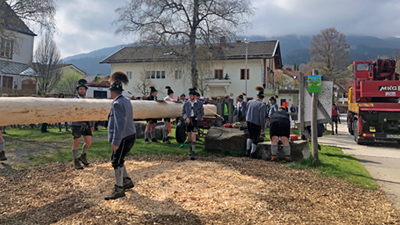 Traditionelles Maibaum-Aufstellen