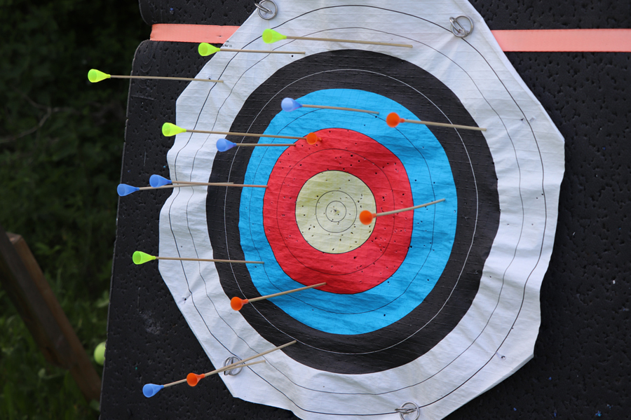 Bogenschießen oder Blasrohrschießen auf Scheibe