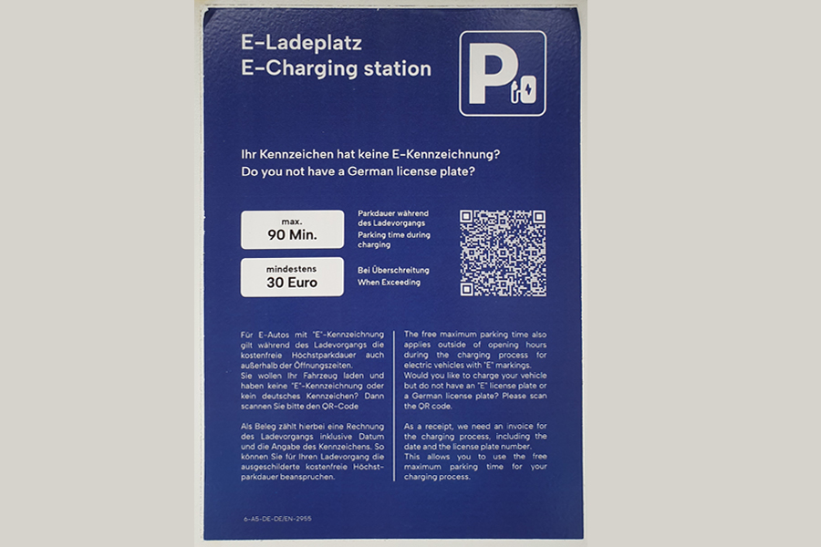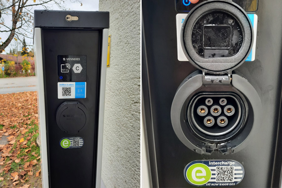Das System akzeptiert alle gängigen E-Ladekarten oder der Kunde aktiviert den Ladevorgang direkt vor Ort über die App "MENNEKES Charge Xtra/Premium". Der Barcode steht am Gerät. Langfristig ist eine 2. Ladestation geplant.
