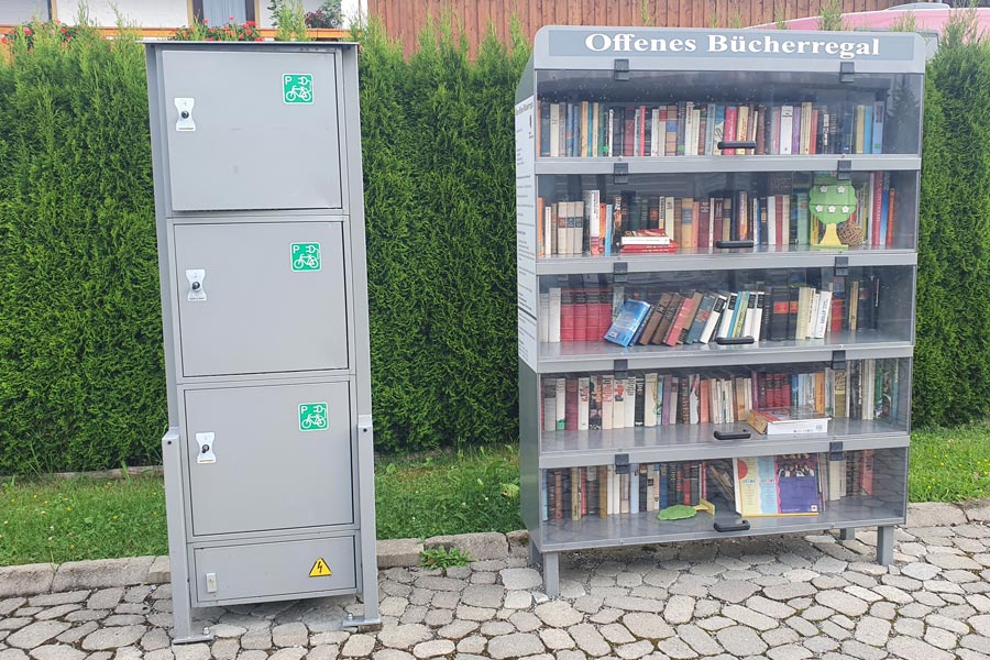 Für alle Gäste, die mit dem E-Bike unterwegs sind und in Nesselwang ihren Akku aufladen müssen, stehen am Willkommensplatz drei Schließfächer mit insgesamt sechs Stromanschlüssen zur Verfügung.