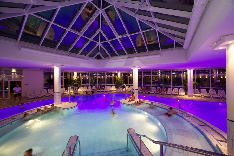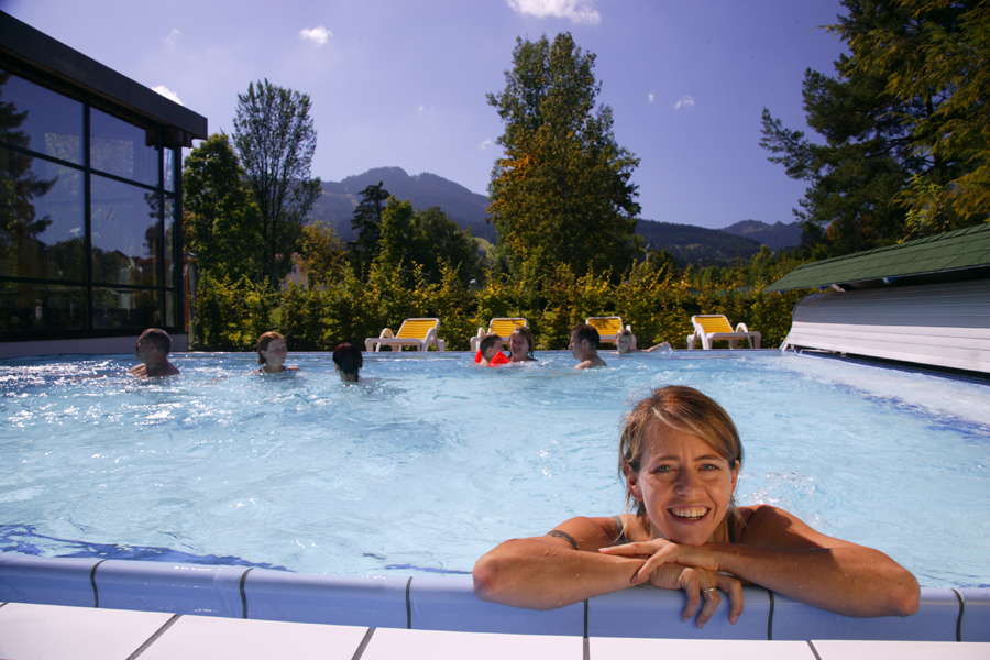 Das ganze Jahr über können Sie hier im wohlig warmen Wasser verweilen. Ob bei strahlendem Sonnenschein mit Blick auf den „Alpspitz“ oder in den Abendstunden unterm Sternenhimmel - diesen Genuss sollten Sie sich nicht entgehen lassen. Ganz besonders im Winter sind die angenehmen Wassertemperaturen bei frostigen Minusgraden im Freien eine Wohltat.