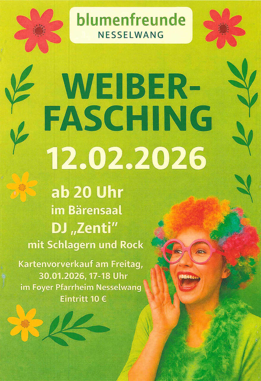 Donnerstag, 12. Februar 2026: Weiberfasching, Blumenfreunde Nesselwang