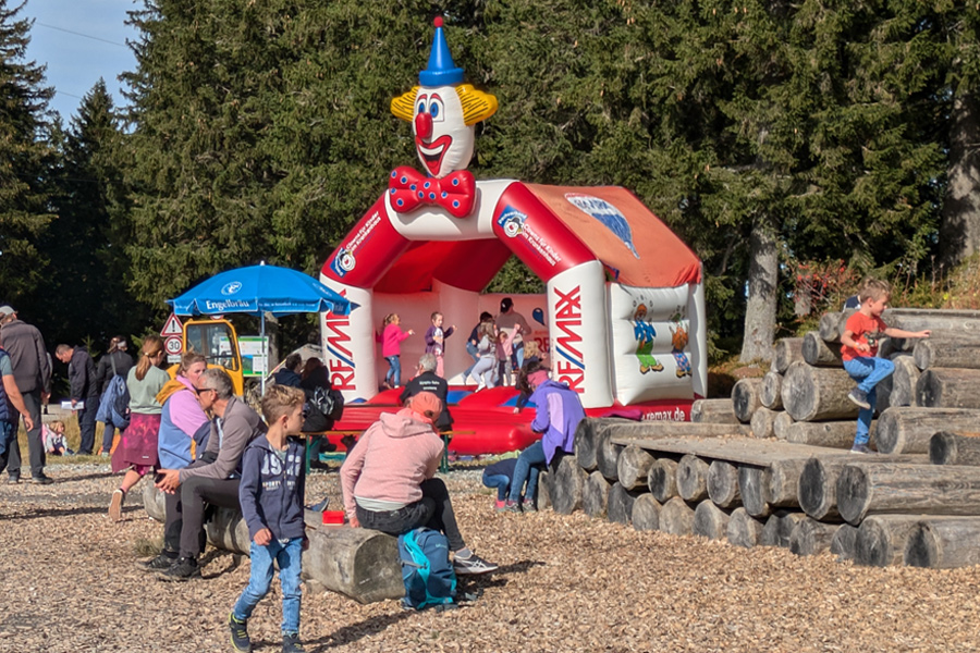 Und für die kleinen Gäste gibt es ein buntes Kinderprogramm: Hüpfburg, Luftballonkünstler, Bogenschießen und Herbst-Schnitzeljagd.