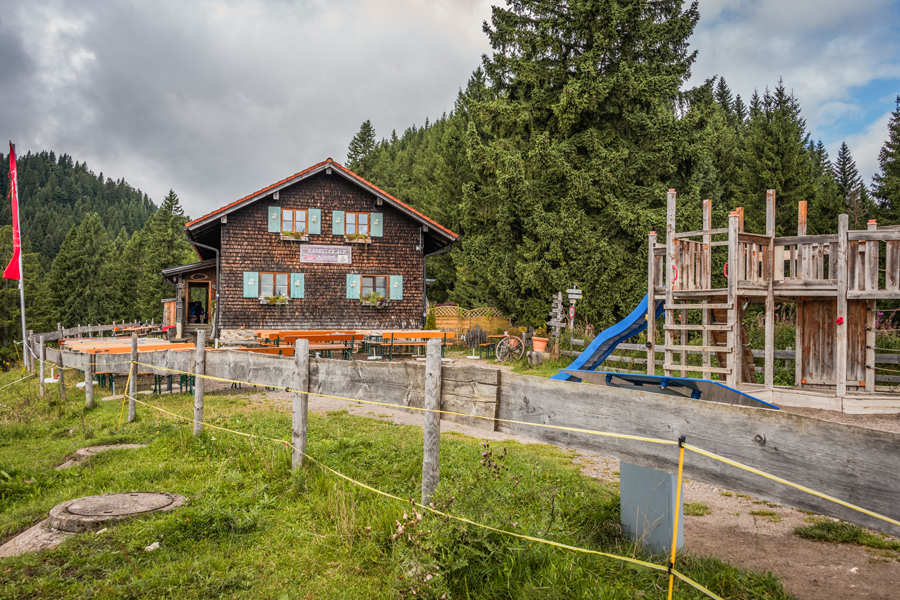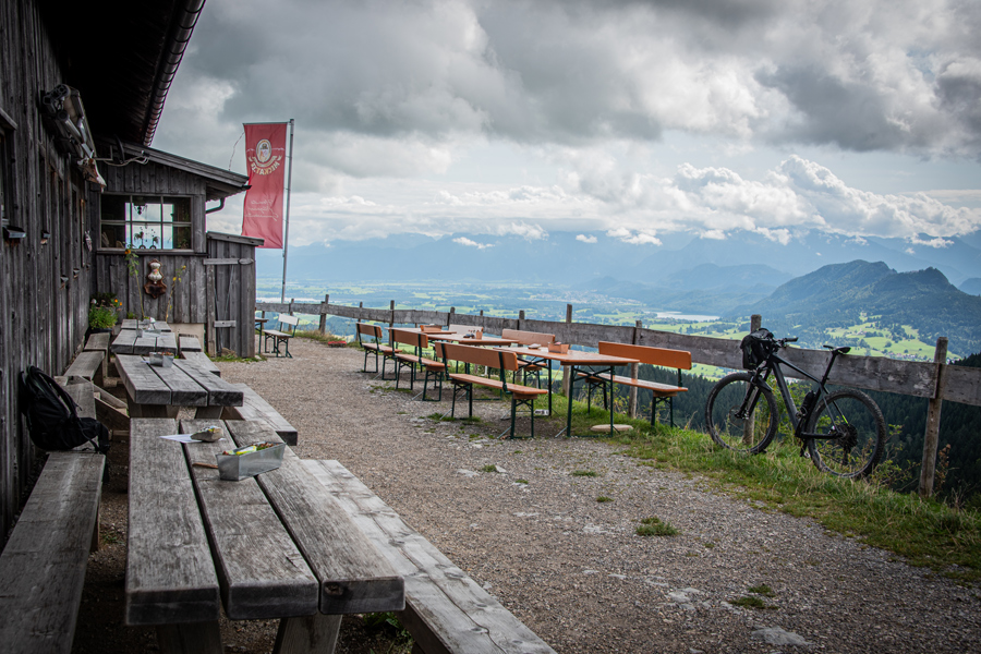 Berghütte ca. 15-20 Gehminuten unterhalb der Bergstation der Alpspitzbahn auf 1.350 m mit Panoramaaussicht auf die Ammergauer Alpen und ins Voralpenland.