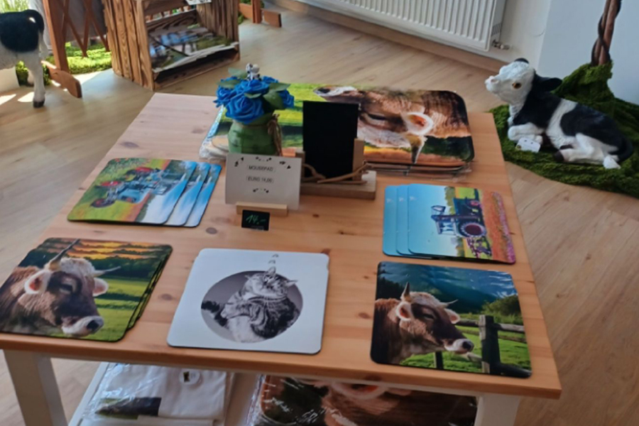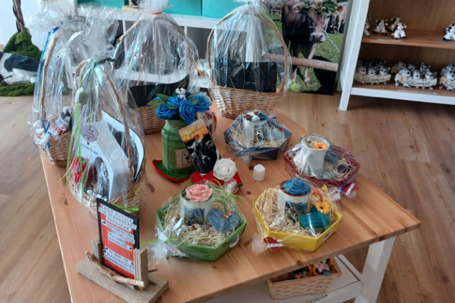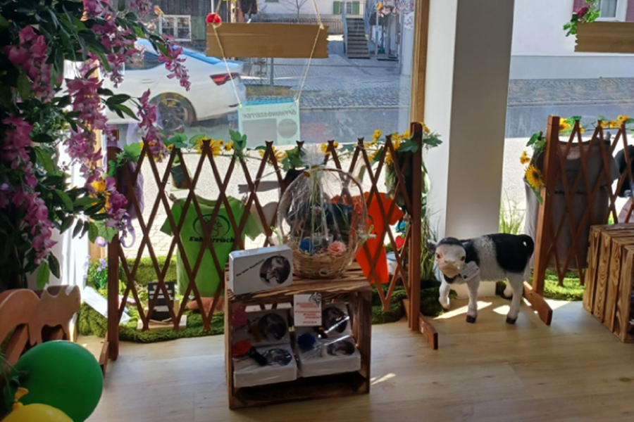 s' kuhnarrisch Lädele in Nesselwang bietet Geschenke, Deko, T-Shirts, Caps, Tassen uvm. für Kuh-, Traktor- und Allgäufans.