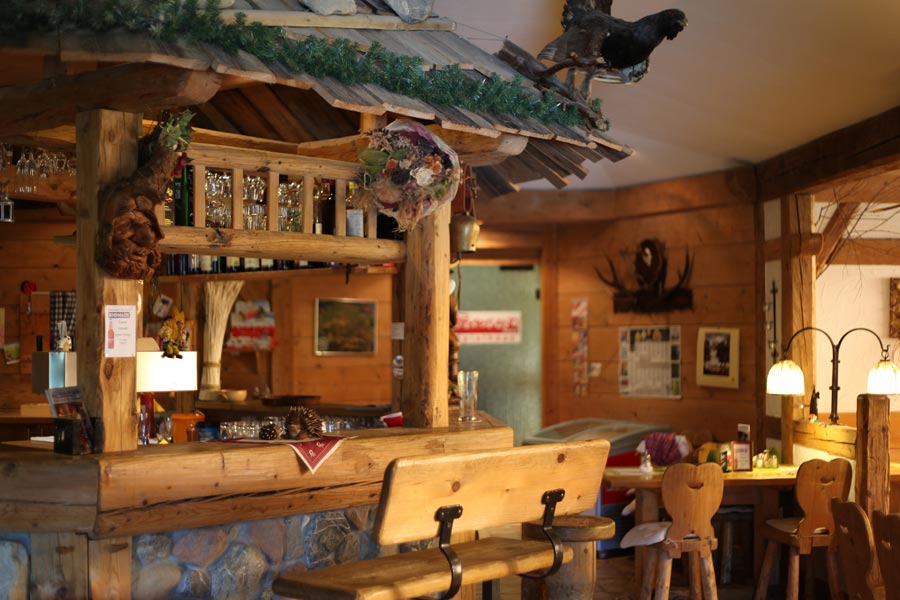 Bei der Einrichtung des Restaurants wurde darauf geachtet, den alten Charme der Räumlichkeiten zu bewahren, um so ein rustikales Hütten-Ambiente zu bieten. Das Restaurant bietet Platz für ca. 50 Gäste